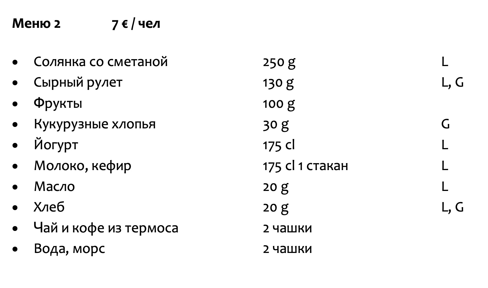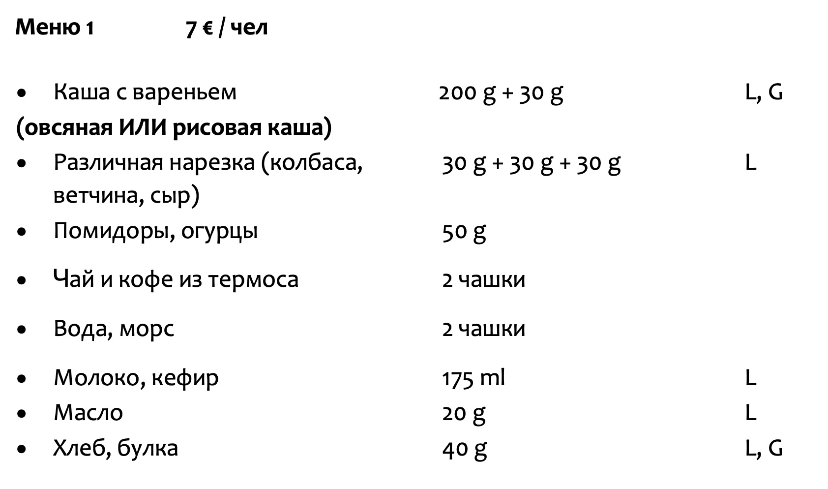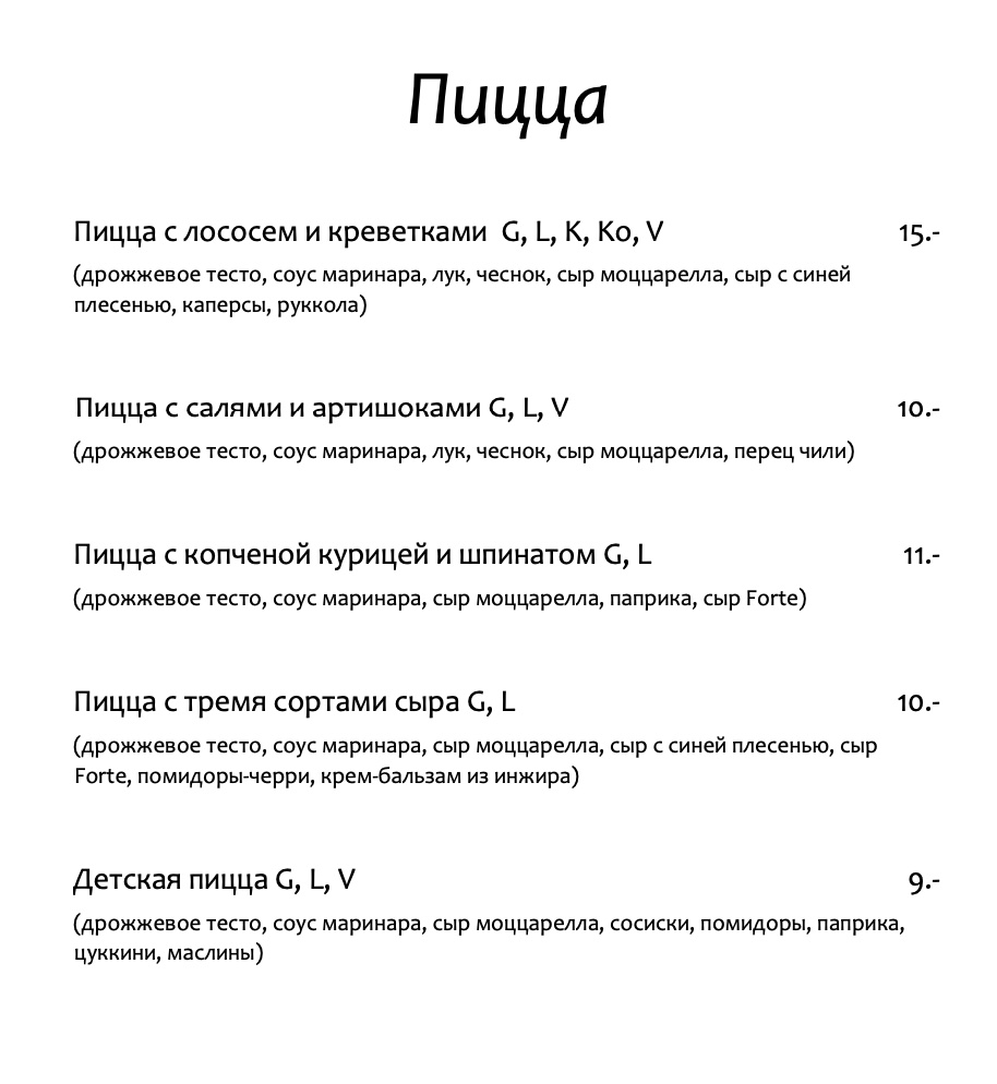 - По предварительному заказу – завтраки в пятницу, субботу и воскресенье, а также обед в субботу