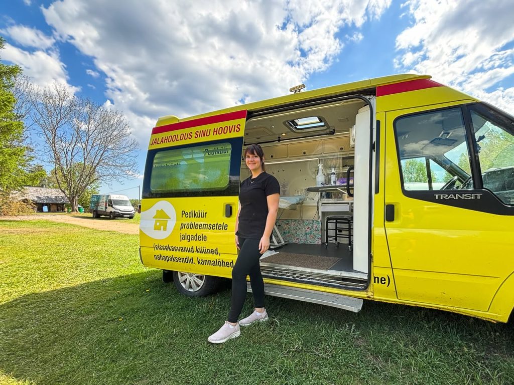 Maidla mõisaõuel ootavad sind ratastel karavansalongid: massaažibuss, juuksurihaagis ja mobiilne jalahooldussalong.