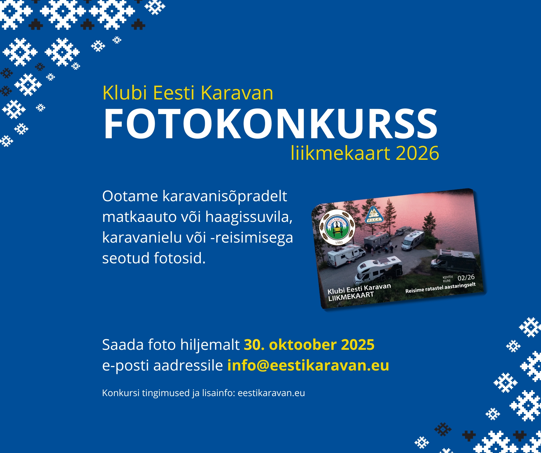 Klubi Eesti Karavan 2026.a liikmekaardi FOTOKONKURSS