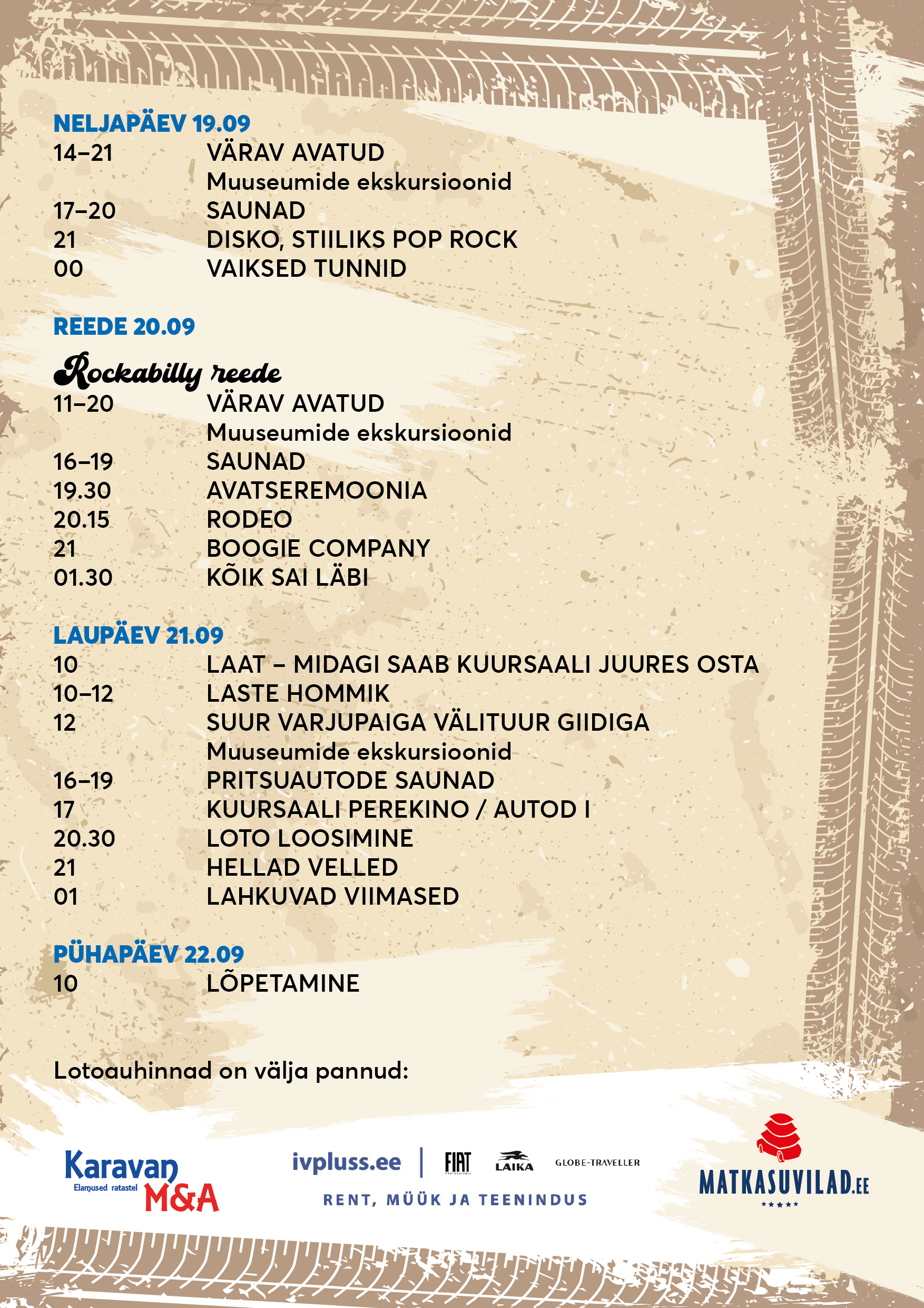 Üritusele on oodata ligikaudu 300 karavani Eestist, Soomest, Lätist ja Leedust, nii et seltskonda, nostalgiat ja avastamisrõõmu jagub kõigile – ja seda sõna otseses mõttes, sest võib-olla leiadki varjupaiga rikkalikust väljapanekust oma lapsepõlve unistuste sõiduki… või vähemalt selle, mis sellest järel …