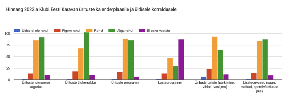 Hinnang 2022.a Klubi Eesti Karavan ürituste kalenderplaanile ja üldisele korraldusele on positiivne. Nurinat oli suurematel üritustel karavanide parkimiskorralduse üle – arvestame seda järgmiste ürituste korraldamisel.