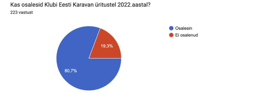 Hea meel on näha, et huvi järgmiste Klubi Eesti Karavan ürituste osas on suur ja pea 93% vastanutest plaanivad osa võtta 2023. aasta üritustest.